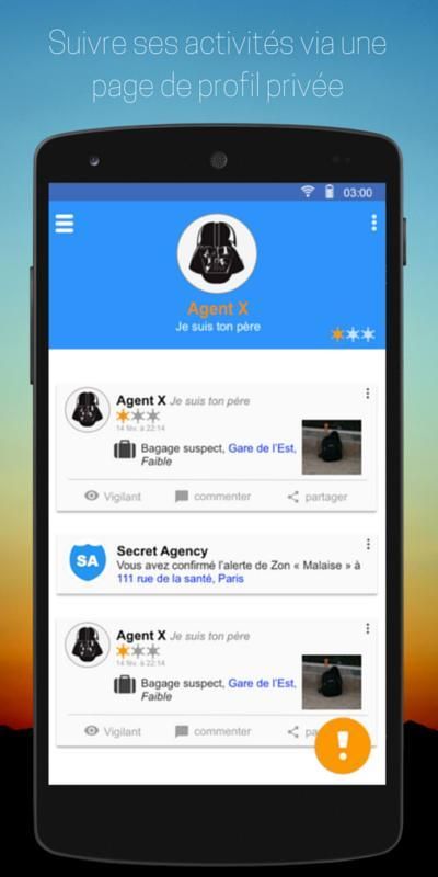 Secret Agency is a social network of citizen oversight FREE where users are pseudonyms and appear completely anonymously and securely. To avoid abuse, each user must connect their Facebook account with the application and confirm their registration by phone number with a verification code sent via SMS from Secret Agency. Our application is committed to protecting this information and respect the privacy of its users.