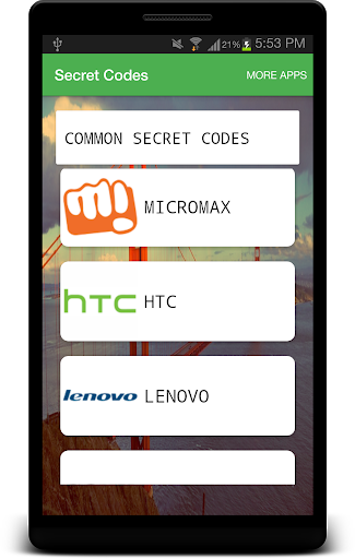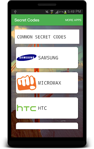 Samsung, LG, Lenovo , Micromax , Sony , HTC and Common codes for all android devices.