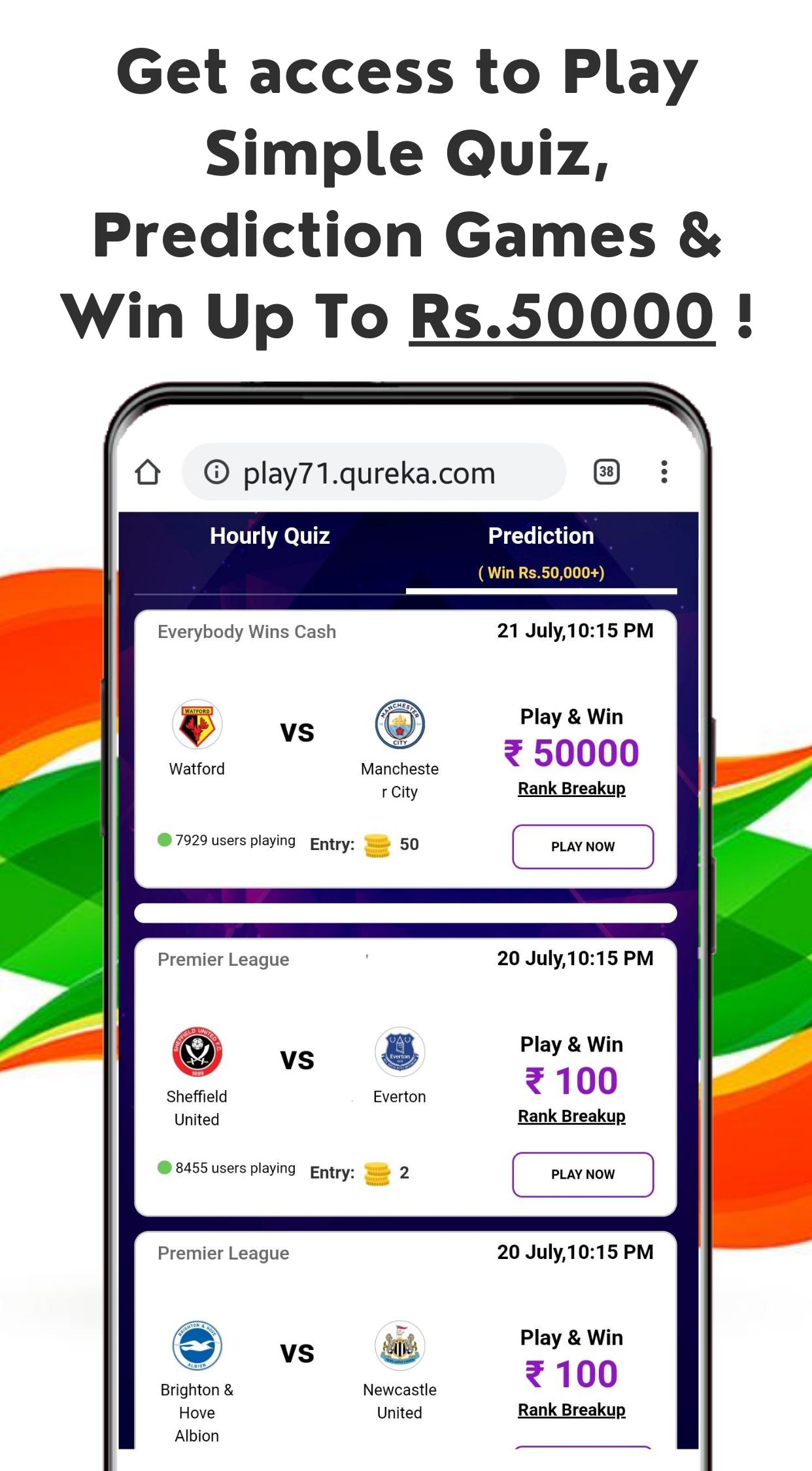 Get access to play Easy & Interesting Quiz, Prediction Games & win Real Money !!