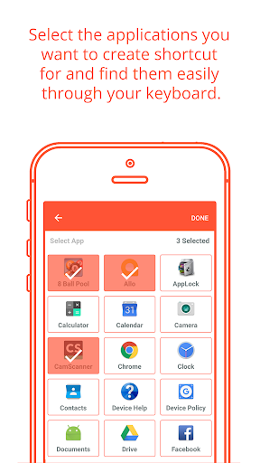 Search for any application within your phone with ease. Assign a key to one or more application and find a shortcut on long pressing the key on your keyboard.
