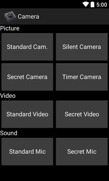 This software contains Standard Cam, Video Recorder and Microphone Apps and some options with muting shutter sound for Silent Secret Hidden Spy Camera, Video and Voice Recording. All-in-One for you~~