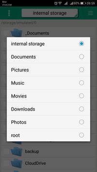 - Select: Internal Storage, External Storage, USB Storage and predefined places (Documents,Pictures and etc.)