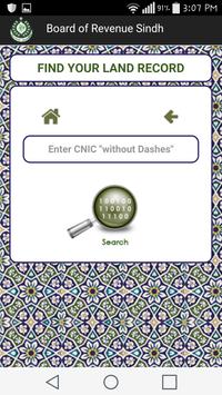 Board of Revenue, Sindh has launched this Mobile Application to search your land record through your CNIC/ NIC and Name. Please visit the nearest Peoples Service Center located in the premises of Deputy Commissioner's office to get the Printed Computerized copy of your land record.