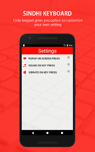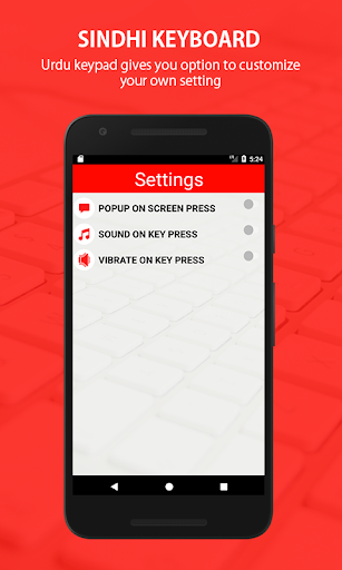 •หลังจากเปิดใช้งานแป้นพิมพ์ Sindhi ตั้งค่าวิธีการป้อนข้อมูลระหว่างแป้นพิมพ์ Sindhi คีย์บอร์ดและอุปกรณ์เริ่มต้นของอุปกรณ์•ไปที่การตั้งค่าเป็นเปิด / ปิดคุณสมบัติที่แตกต่างกัน