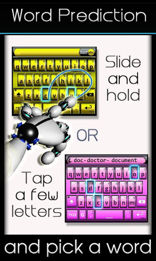 Instead of entering text by tapping on the keyboard letters, SlideIT keyboard eases texting by sliding a finger along the keyboard letters, while the words “magically” appear on the screen.