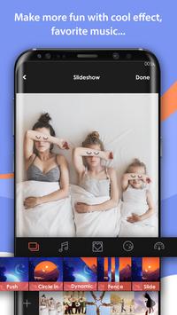 You can create video or photo slideshow from Slideshow Maker app by select photos from your gallery, add music mp3, select slide show animations and click Done to get an awesome video slideshow.