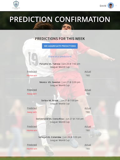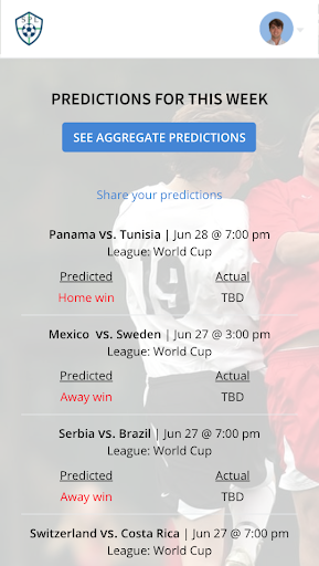 ก่อนที่ผู้เล่นที่เข้าแข่งขันจะสามารถเข้าถึงการคาดการณ์รวมหากพวกเขาต้องการ - เพื่อดูว่าภูมิปัญญาของฝูงชนที่คาดการณ์ไว้สำหรับผลลัพธ์ของการแข่งขันทั้งเจ็ด บางคนอาจพบว่าการคาดการณ์เหล่านี้น่าสนใจ!
