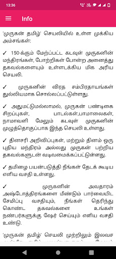 แอป 'Murugan ทมิฬ' เป็นหนึ่งในแอปพลิเคชั่นทางจิตวิญญาณจำนวนมากที่เป็นที่นิยมของพระเจ้าที่หายากและมีค่าเป็นหลักสำหรับผู้ติดตามของชาวฮินดูธรรมะ