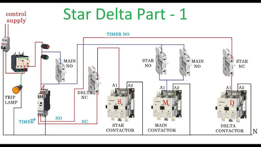 Delta Star Delta Diagram แผนภาพการเดินสายสำหรับมอเตอร์เริ่มต้น 3PH