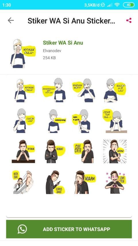 - Pilih salah satu Sticker WHATSAPP Stiker Si Anu lalu pilih add to whatsapp