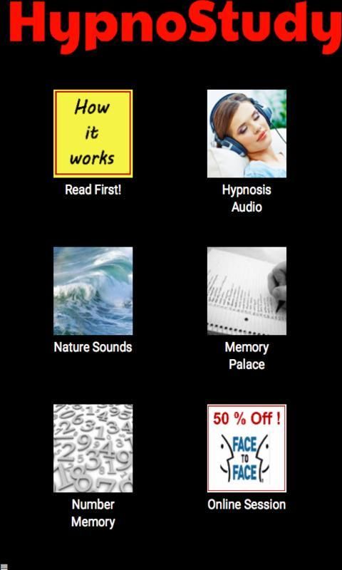 This app contains a 30 minute hypnotic audio track that will improve any student's motivation to study. It also includes links to memory technique video, serene background music, and a link to www.HypnosisByVideoChat.com where the student can receive online hypnosis sessions over the internet to reinforce the memory techniques presented in the hypnotic program, or other problems that may be holding the student back.