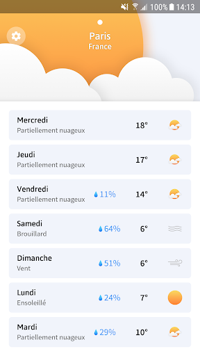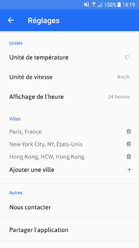 หน้าจอโดยเมืองสแกนไปทางขวาหรือซ้ายเพื่อเปลี่ยนเมืองและเพิ่มเมืองจากหน้าจอการปรับ L 'เรียบง่ายและมีประสิทธิภาพฝนและ ลม - ฝนและลมจะแสดงในแอปพลิเคชันและในวิดเจ็ตตามความจำเป็นไม่มีอีกต่อไปเนื่องจากเสร็จสิ้นชุบแข็ง