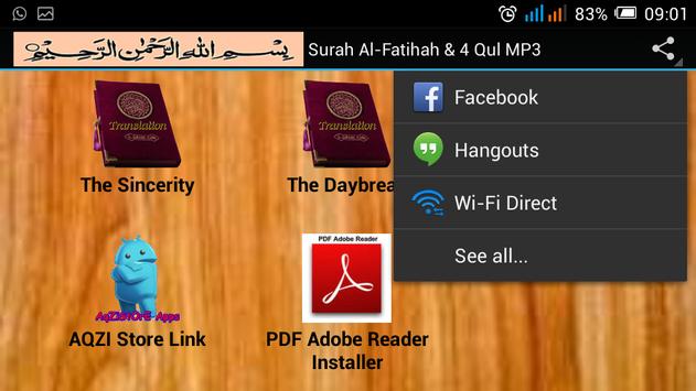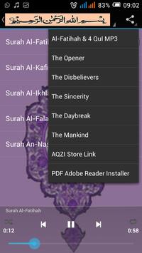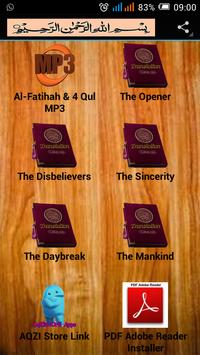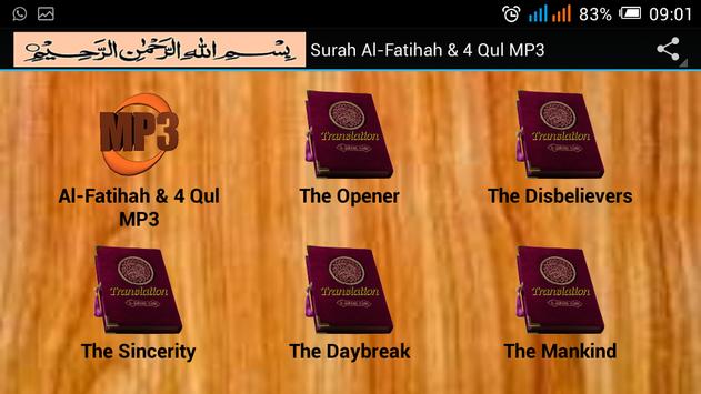 'Surah Al-Fatihah and 4 Qul MP3' is produced in the form of MP3 with translation.