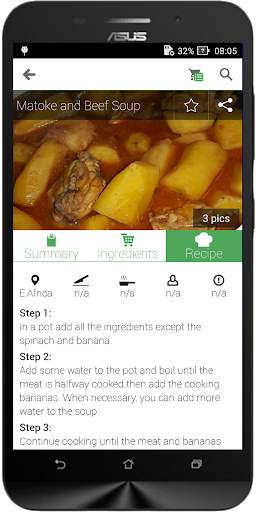 Swahili Recipe is a cookbook app that teaches you how how to prepare different types of recipes from East African origin. With impressive design and images it becomes so easy to follow a step by step instruction on how to prepare a particular recipe. In the meantime the app has only few recipes in each category. We will be adding more and more recipes on each update. Enjoy!!
