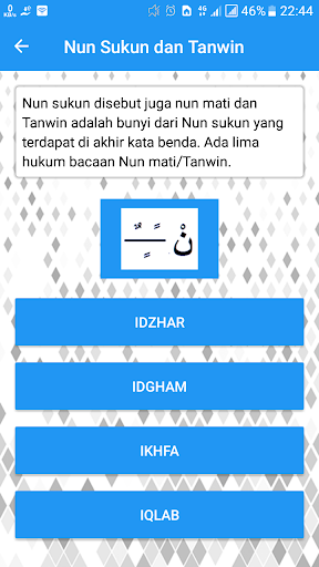 *) Menu Hukum Bacaan dan contoh bacaan dengan suara pelafalan