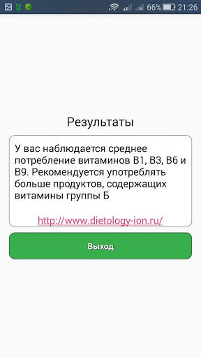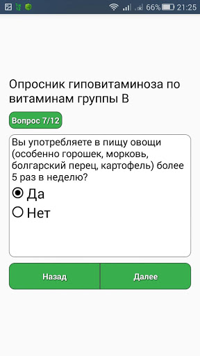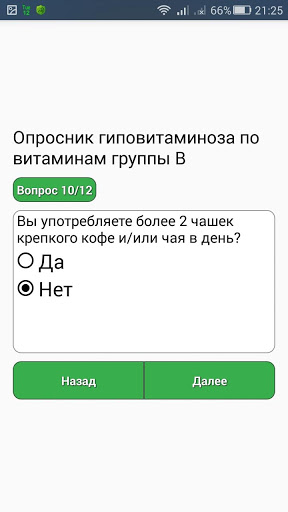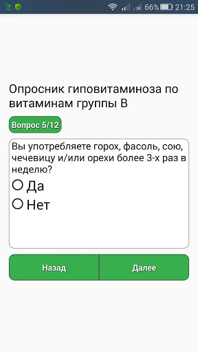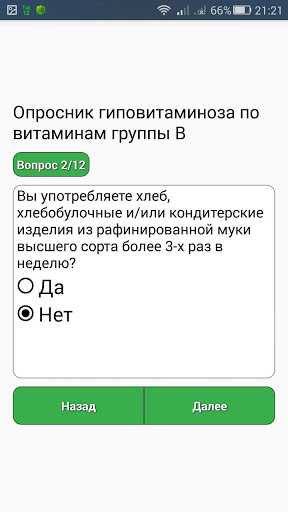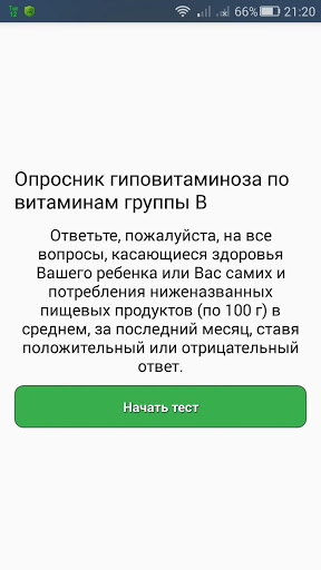 การทดสอบนี้ด้วยวิธีใช้แบบสอบถามช่วยให้ในการวัดระดับของการบริโภควิตามินของกลุ่ม B: Thiamine, Niacin, Pyridoxine และ Folacine และมีความจำเป็นต้องตอบคำถามทุกข้อเกี่ยวกับสุขภาพของลูกของคุณ หรือคุณเองและการบริโภคอาหารที่มีกลิ่นหอม (100 กรัม) โดยเฉลี่ยในช่วงเดือนที่ผ่านมาตอบสนอง "ใช่" หรือ "ไม่"