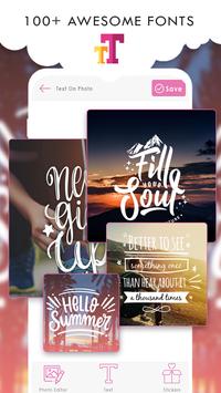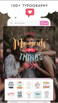 by using an awesome Text on Photo app lets you add beautiful typography on photos however you like. At that same time, combine it with various filters, cool stickers, stunning frames and artwork to help you make beautiful, rich and creative photos.
