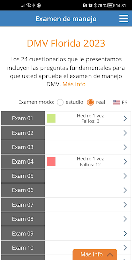 การสอบความรู้สำหรับการได้รับใบอนุญาตประกอบด้วย 50 คำถามแบบปรนัยเกี่ยวกับกฎหมายและสัญญาณจราจร