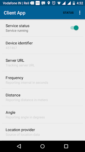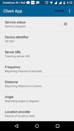 This Application is used to track devices on real time through the android phone.From here user can start and stop services.