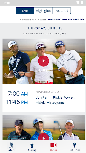 > สามช่องทางของการสตรีมสดจากคันทรีคลับตลอดสี่วันของการแข่งขันชิงแชมป์รวมถึงการครอบคลุมกลุ่มที่โดดเด่นของผู้เล่นอันดับต้น ๆ ของเกม