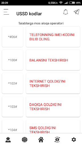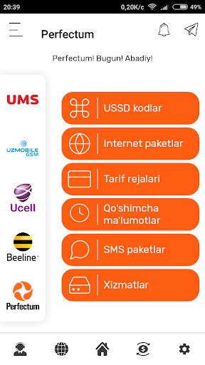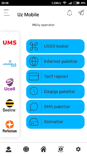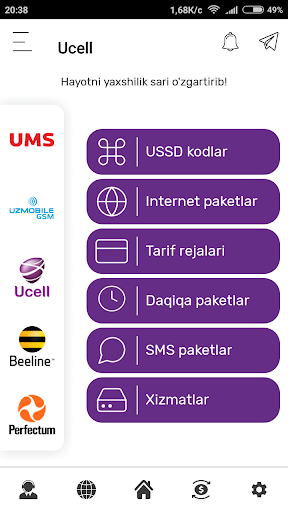 USSD Pro dasturni o'rnatganingizdan so'ng O'zbekiston mobil aloqa operatorlari UMS Uzmobile Ucell Beeline va Perfectum haqida barcha savollaringizga javoblar olasiz va quyidagi imkoniyatlarga ega bo'lasiz: