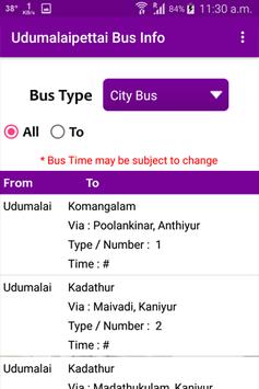คำอธิบายของ Udumalaipettai Bus Info