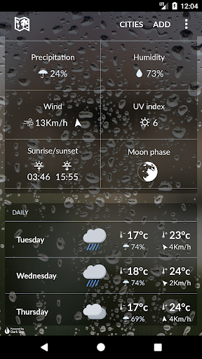 Weather ยูกันดาเป็นแอพพลิเคชั่นพกพาอากาศฟรีพร้อมการออกแบบตามหลักสรีรศาสตร์และทันสมัยเพื่อให้แน่ใจว่าประสบการณ์การใช้งานที่ดีขึ้นและการอ่านข้อมูลสภาพอากาศที่ดีขึ้น