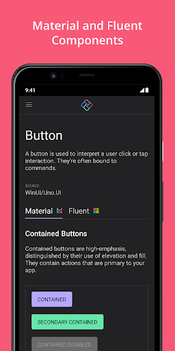 แอปพลิเคชั่นนี้แสดงเนื้อหาและธีมที่คล่องแคล่วและคุณสมบัติเพิ่มเติมของไลบรารีแพลตฟอร์ม UNO