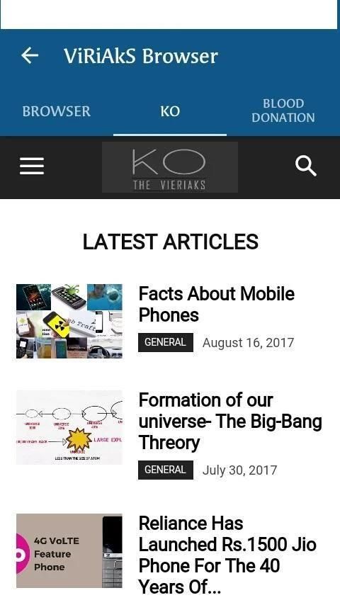 Viriaks Is the Four Members Team From India, Karnataka. Created This Amazing Web Browsing App In Which You Can Browse The Web. And Also There Are Two Section Which Provides Knowledge Of the Trending News And Blood Donating And Recieven Facility.