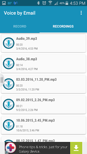 This application lets you send free audio messages of small size via email, SMS, WhatsApp , Bluetooth, Wi - Fi Direct, messages etc. It is very easy to use and useful for places where the cost of conventional calls is high which makes it cheaper and easier to send voice messages. This app is very popular among users of the Nauta portal in Cuba (country) due to the high cost of international calls.