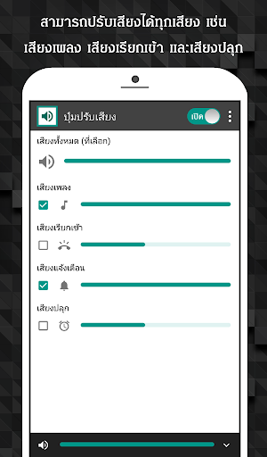 เปิดแอปขึ้นมาแล้วติ๊กเลือกเสียงที่คุณต้องการจะปรับ โดยแบ่งเป็นเสียงเพลง เสียงเรียกเข้า เสียงแจ้งเตือน และเสียงปลุก