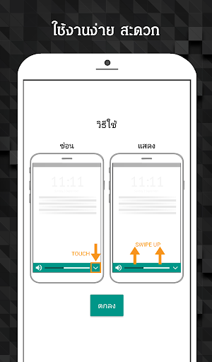 - ใช้นิ้วเลื่อนที่ขอบจอด้านล่าง เพื่อแสดงแถบปรับเสียง