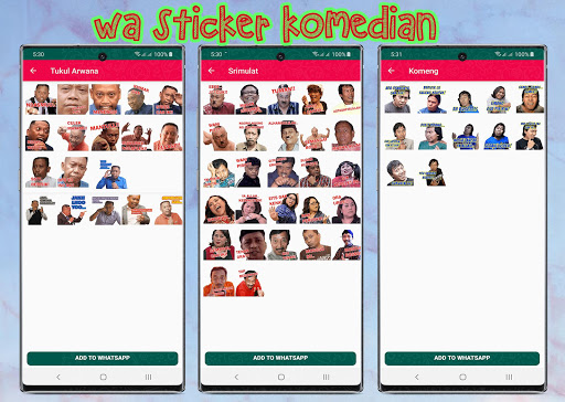 Let's Asly Comedian ด้วย Parto, Sule, Andre, Azis, Nunung, Cagur, Doy Schoolgirl, Bedu, Tukul Arowana, Arise, Srimulat, Warkopdki, Hajj Bolot, Komeng, เค้กข้าว Cak, Dono คาสิโนของ indro, Rina จมูกและอื่น ๆ อีกมากมาย Kangen Andre Raja Gombal, ความทรงจำของ Olga, เพลงของ Andeca Andeci, Jail Sule DKK, สแลงสแลง, Sunda, Javanese, Betawi ที่มีคุณสมบัติในรูปแบบของสติ๊กเกอร์รูปภาพตลกที่คุณสามารถดาวน์โหลดได้ฟรี นอกจากนี้ยังมี Srimulat Warkop Comedian Sticker สติ๊กเกอร์ Comedian YouTuber ในอินโดนีเซียเป็นศิลปินที่เหมาะสมที่มีแฟน ๆ มากมาย YouTubers ชาวอินโดนีเซียที่มีชื่อเสียงสองคนที่มีสมาชิกมากที่สุดของหลักสูตรคือ Atta Halilintar และ RIA Ricis ในฐานะที่เป็นผลรวมที่สองของ YouTuber เหล่านี้ฉันได้สร้างแอปพลิเคชั่นที่เกี่ยวข้องกับภาพถ่ายทั้ง Atta Halilintar และ RIA Ricis นำมาจาก Instagram ทั้งคู่แล้วจะทำขึ้นในฐานะสติ๊กเกอร์เพื่อความบันเทิงและให้กำลังใจใน Whatsapp Memes Pepe, Dank Memes, คนดังและ YouTubers, ปฏิกิริยา Twitch, Emojis, Llamas และตอนนี้มีชุดสติกเกอร์คริสต์มาสพิเศษ 🔰
