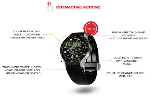 หน้าปัดนาฬิกาสปอร์ตที่เป็นเอกลักษณ์ด้วยเอฟเฟกต์เสียงกระดิ่งทุกชั่วโมงสัมผัสเอฟเฟกต์เสียงและคุณสมบัติการโต้ตอบมากมายสำหรับ Android Wear 2.0 และนาฬิกาวอลล์เปเปอร์สดสำหรับโทรศัพท์ Android