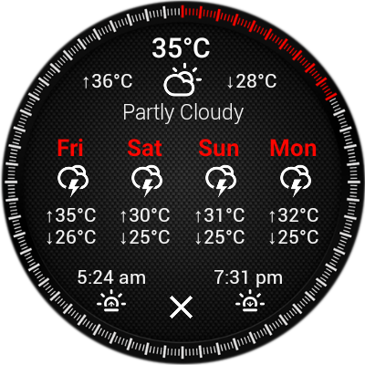 บนหน้าจอนาฬิกาหลักเพื่อรับการพยากรณ์อากาศ 4 วันและอื่น ๆ ข้อมูลสภาพอากาศ
