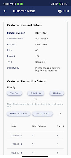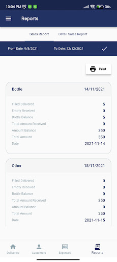 โซลูชันแอพมือถือแบบครบวงจรสำหรับผู้จัดหาน้ำดื่มซึ่งช่วยให้พวกเขาสามารถจัดการกิจกรรมทางธุรกิจของพวกเขาเช่นการส่งมอบให้กับลูกค้าการเติมค่าใช้จ่ายการขายเคาน์เตอร์การขายรายเดือนและรายงาน defaulter ตั๋วเงินลูกค้าและเด็กส่งมอบมีฐานข้อมูลในตัวในตัวรวมถึงฐานข้อมูลคลาวด์ซึ่งช่วยให้คุณสามารถทำงานกับงานของคุณโดยมีหรือไม่มีอินเทอร์เน็ตยังอนุญาตให้ผู้ใช้โทรหาลูกค้าส่ง SMS เกี่ยวกับรายละเอียดการจัดส่งของพวกเขาและสร้างรายงานการเรียกเก็บเงินจากลูกค้าใน PDF ซึ่งพวกเขาสามารถแบ่งปันกับลูกค้าได้เช่นกัน