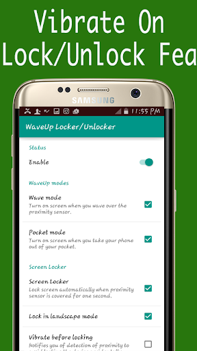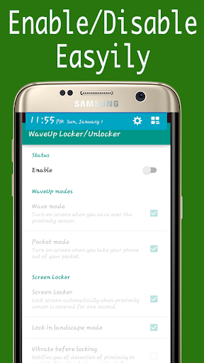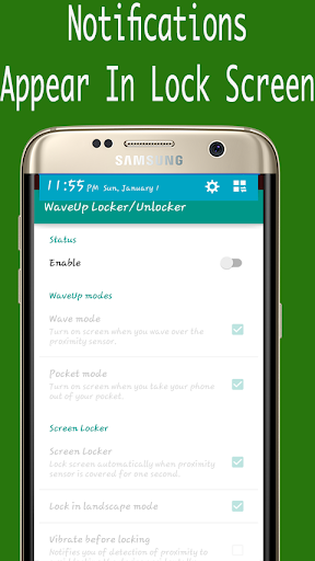 Wave Locker/Unlocker Offer you Best and easy way to Lock/Unlock screen just wave up your hand over sensor With notifications enabled and Sudden lock protect .
