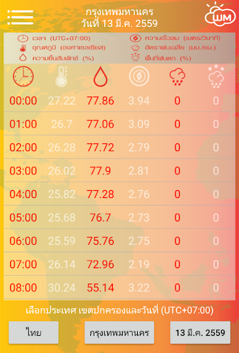 ผลการพยากรณ์อากาศเป็นรายเขตปกครองของแต่ละประเทศในเอเชียตะวันออกเฉียงใต้และยุโรป