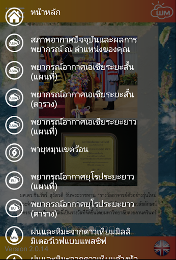 WMApp เป็น app ที่ให้บริการข่าวสารด้านอุตุนิยมวิทยาและภัยธรรมชาติของโลก ได้แก่