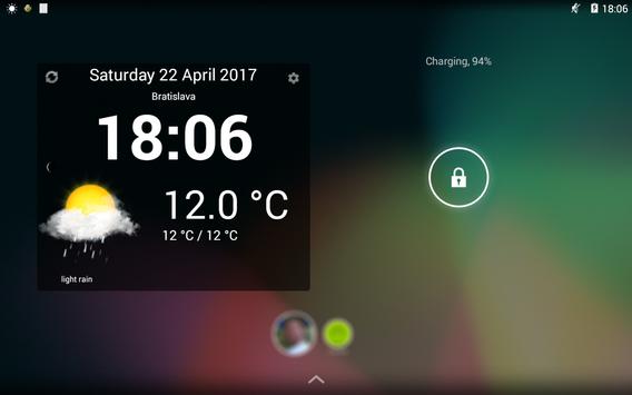 Daydream function - allow screensaver when while charging or in docking station, Open system Settings->Display->Daydream(or open from app settings screen) and select "Weather &Clock Widget" as you daydreram app. The brightness of daydream can be set in the application settings screen.