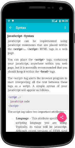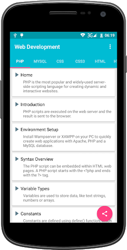 Web Development also features interactive examples and code which the user can interact with and easily understand, the codes for the example is very useful for the users to understand the particular topic. Web Development is also a Web editor and IDE which helps users to run the code within the app and tweak the webpage easily or try the example code themselves to understand the concept better.