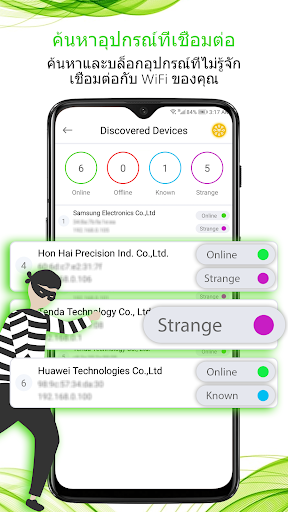 ☑ อุปกรณ์ที่เชื่อมต่อกับ WiFi ของคุณ: รับข้อมูลเชิงลึกและรายงานรายละเอียดทั้งหมดของอุปกรณ์ออนไลน์ออฟไลน์อุปกรณ์ที่รู้จักและอุปกรณ์แปลก ๆ รับรายการอุปกรณ์ที่เชื่อมต่อทั้งหมดในการเชื่อมต่อ WiFi ของคุณและช่วยคุณในการค้นหาบุคคลภายนอกผู้บุกรุกและโจรขโมย WiFi รับข้อมูลประจำตัวของอุปกรณ์แต่ละชิ้นที่มีที่อยู่ IP ที่อยู่ MAC และชื่อผู้จำหน่ายหรือผู้ผลิตเพื่อช่วยให้คุณระบุอุปกรณ์ได้ง่าย
