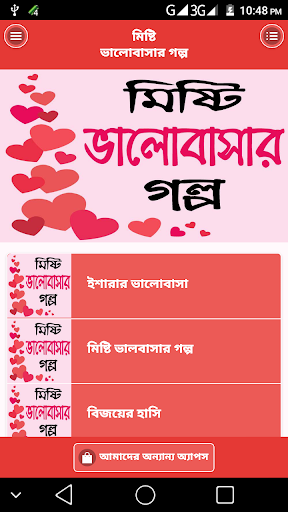aptic สำหรับเรื่องราวความรักที่แท้จริงรักหวานหรือ 'Sotto Valobashar Golpo Kahini' แอพนี้รวมถึง 'เคล็ดลับความรัก Gurur' & 'Jouboner Jiboner Golpo' ซีรีย์โรแมนติกนี้ให้ข้อความที่ผู้คนมี 'Harano Diner Omor Prem Kahini' O 'Koster Kache Asar Golpo' เพื่อแบ่งปันกับผู้อื่น