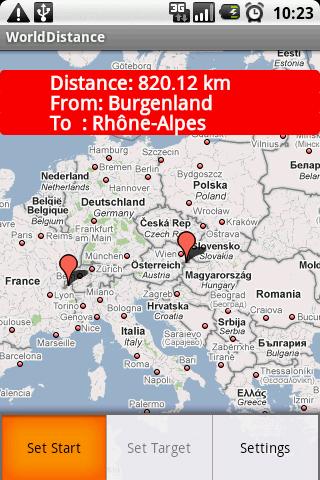 แอปพลิเคชั่นนี้คำนวณระยะทางโดยประมาณระหว่าง 2 คะแนนบนแผนที่โลก! อัปเดต: การตั้งค่าจะถูกบันทึกไว้