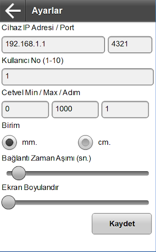 Android tablet yada telefon üzerinden girilen verileri WifiMetre cihazına aktarmak için kullanılır. Wifi network aracılığı ile bağlandığınız cihaza ölçüm verileri gönderilmesini sağlar. Android tablet ve telefonlar üzerinde çalışmaktadır.