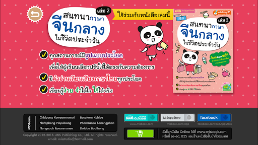 เริ่มต้นฝึกพูดภาษาจีนกลางจากประโยคพื้นฐานในสถานการณ์ต่างๆ ที่ใช้ในชีวิตประจำวัน ครอบคลุมเรื่องราวใกล้ตัวที่จำเป็นต้องรู้ตั้งแต่การทักทายไปจนถึงการพูดคุยในโอกาสต่างๆ ในแต่ละหัวข้อจะมีรูปประโยค เพื่อให้ผู้เรียนสามารถนำไปปรับใช้ได้อย่างคล่องแคล่ว และแต่ละประโยคจะมีคำอ่านเลียนเสียงภาษาไทยประกอบเพื่อให้ผู้เรียนฝึกอ่านออกเสียงได้เหมือนเจ้าของภาษา ตัวช่วยเล่มนี้จึงเหมาะสำหรับผู้ที่ต้องการนำไปใช้งานจริง ถึงแม้ไม่มีพื้นฐานก็สามารถเรียนรู้ตามได้อย่างง่ายดาย