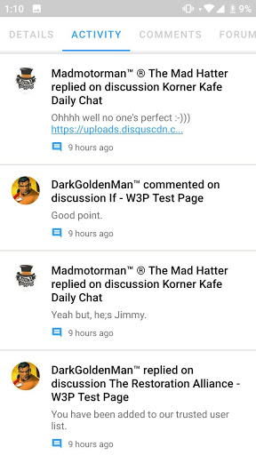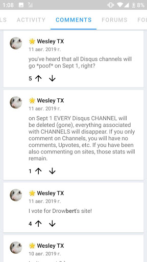 Discusim เป็นแอพที่ไม่เป็นทางการที่ง่ายและสะดวกในการใช้ Disqusดูกิจกรรมผู้ใช้โปรไฟล์ฟอรัมความคิดเห็นการอภิปรายและอื่น ๆและทั้งหมดนี้ด้วยการออกแบบที่เรียบง่ายและรัดกุมโดยไม่มีการโฆษณา แอปพลิเคชันฟรีอย่างสมบูรณ์และไม่มีโฆษณาที่น่ารำคาญ