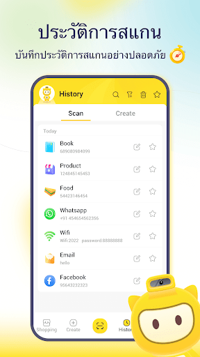 บันทึกคิวอาร์โค้ดที่สแกนและสร้างทั้งหมดจะถูกบันทึกอย่างถาวร และรายการประวัติทำให้ง่ายต่อการจัดการและล้างประวัติของสถานที่ที่เยี่ยมชมและลิงก์คิวอาร์โค้ด