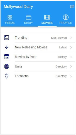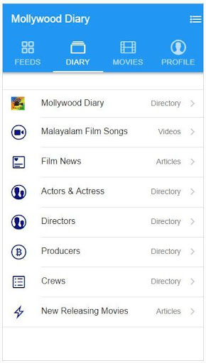 ไดอารี่มาลัยวูดจะเปิดให้ไปที่จุดสิ้นสุดของภาพยนตร์ไปยังผู้ที่ต้องการทำงานในโรงภาพยนตร์มาลายาลัมช่างเทคนิคช่างเทคนิคทำให้ปีศาจได้รับปีศาจ ผลิตภัณฑ์และ Mollywood Diary มือถือแอปเปิ้ลกับบริการความโกรธสงสัยว่ารวมถึงการทำสำเนาและการแก้ไขการออกแบบกราฟิกจะสามารถใช้ได้จากแอปเปิ้ล