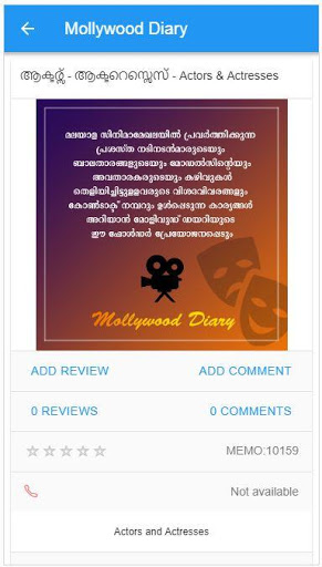 Theis Directory ของผู้ที่ทำงานใน Malayalam Filustry แอปนี้ WILOW ช่วยให้ใครบางคนที่อยู่ในอุตสาหกรรม ทุกคนชื่อและรายละเอียดในแอพโดยติดต่อ Aryanandhrelation@gmail.com ข้อมูลของสถานที่ตั้งของ Sthirio จะสามารถใช้ได้ผ่านสิ่งนี้